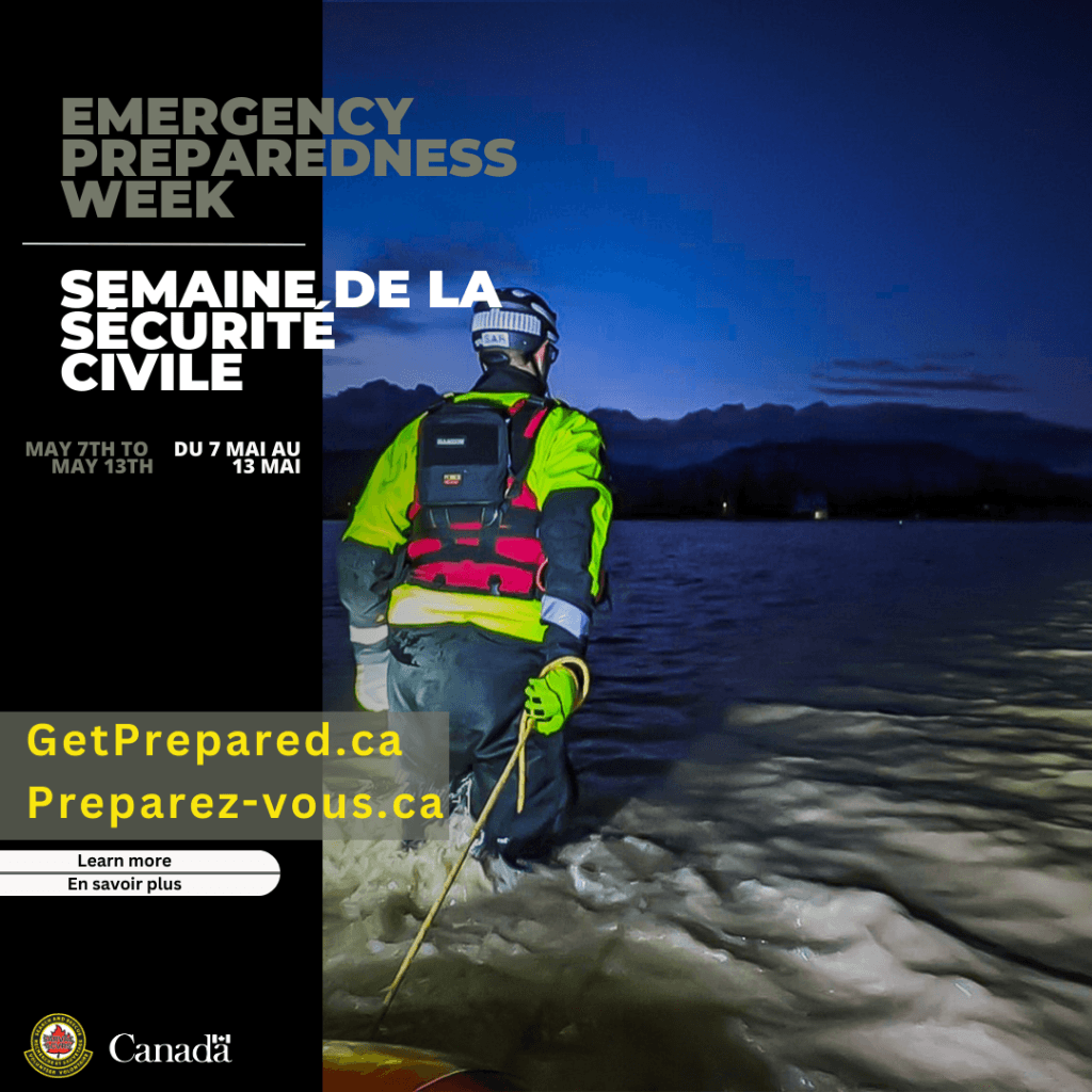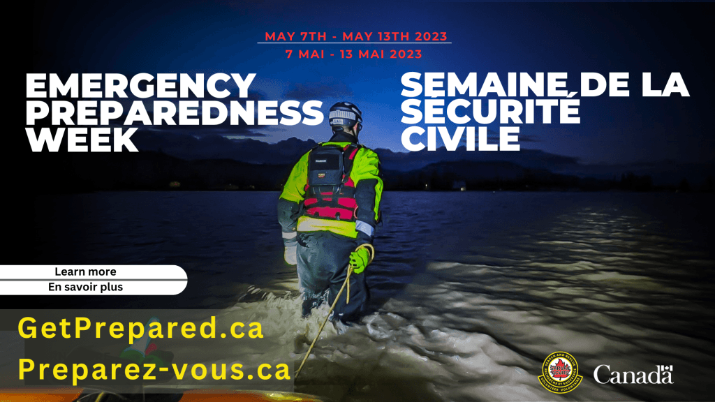 Emergency Preparedness Week (May 7-13, 2023) encourages Canadians to take concrete actions to be better prepared to protect themselves and their families during emergencies. This special week is a national effort lead by Public Safety Canada, provincial and territorial emergency management organizations, Indigenous organizations, non-governmental organizations, and private sector.