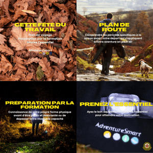 • Téléchargez et utilisez notre application plan de route AdventureSmart pour partager toutes les informations ci-dessus avec les contacts d’urgence et assurez-vous de terminer votre plan de route une fois rentré chez vous!