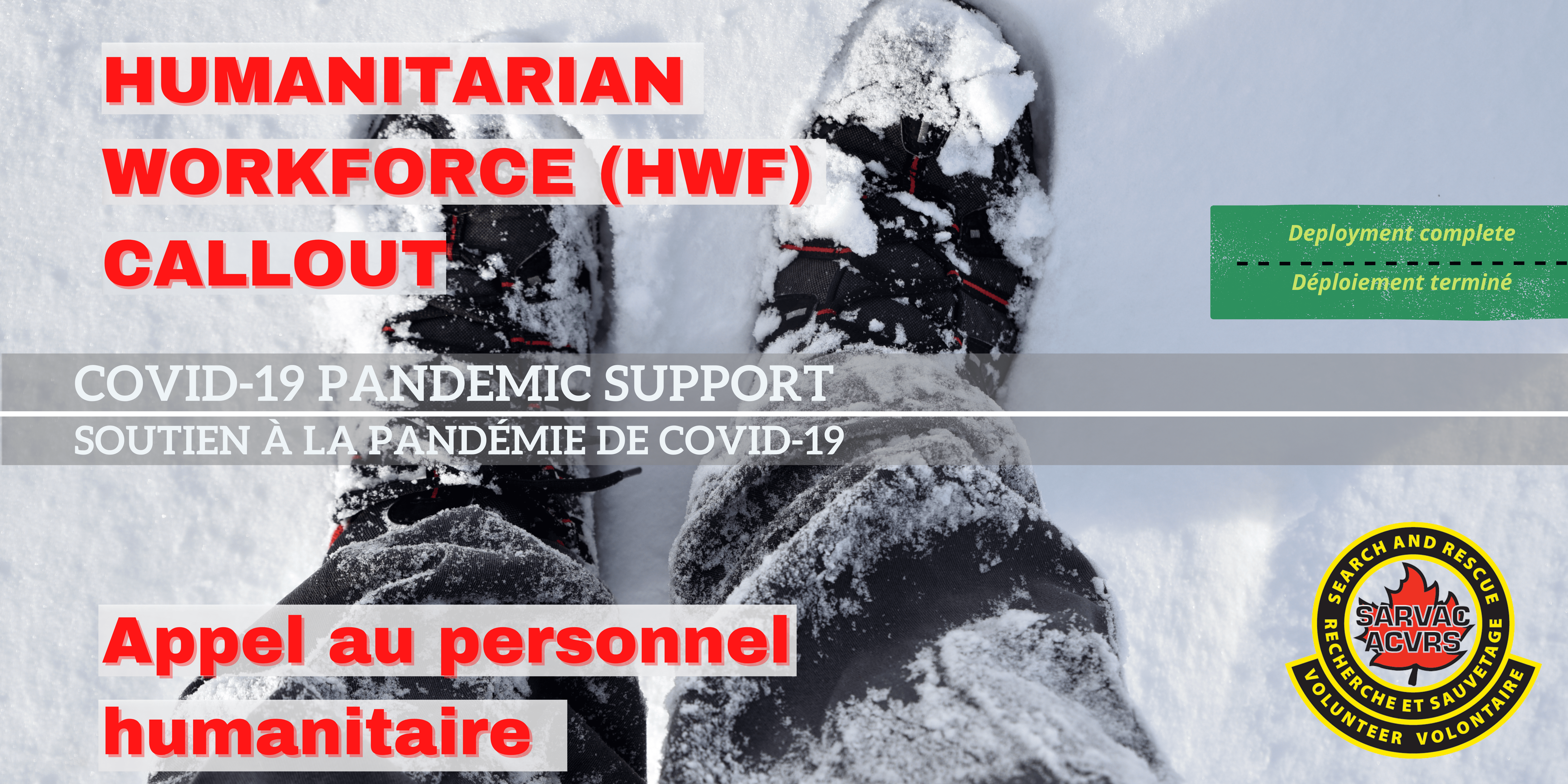 We are once again proud to announce this has been the Search and Rescue Volunteer Association of Canada’s first operational response to a Request for Federal Assistance (RFA) and Humanitarian Workforce (HWF) activation, initiated by Public Safety Canada who ensured our GSAR team, and Deer Lake First Nation community members were able to access the necessary resources vital to the health and safety of those most affected by the spread of COVID-19.